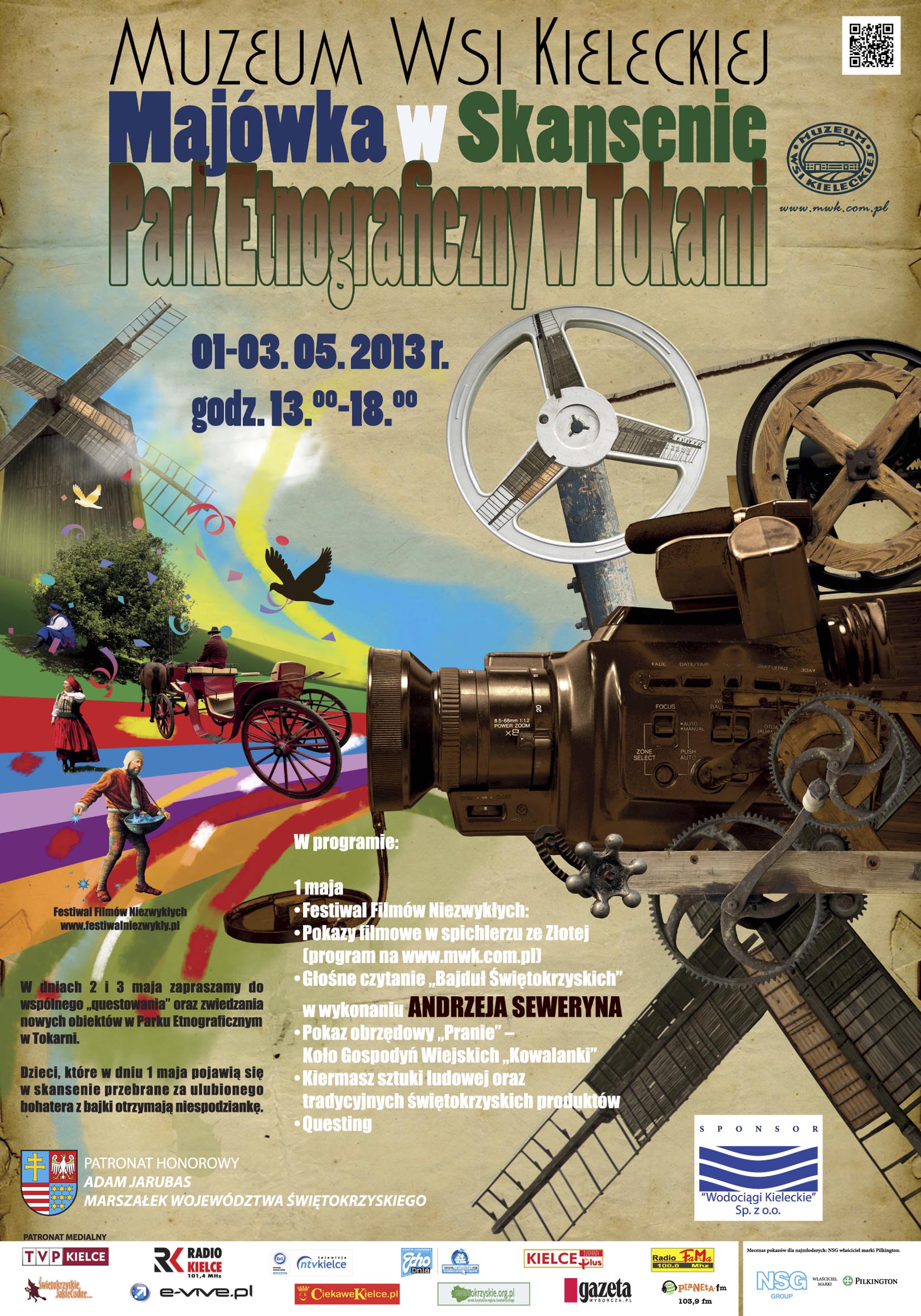 Serdecznie zapraszamy na imprezę "Majówka w skansenie", którą 1 maja 2013 uświetni Festiwal Filmów Niezwykłych. Przyjedzie do nas Andrzej Seweryn i Szymon Kuśmider, którzy wspólnie z dzieciakami będą czytać "Bajduły Świętokrzyskie". Odbędzie się także projekcja filmów Kazimierza Kutza - który w tym roku jest reżyserem honorowym Festiwalu.
