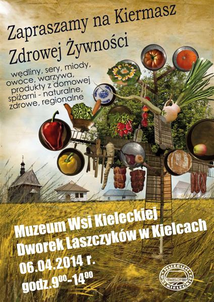 Serdecznie zapraszamy w najbliższą niedzielę, 6 kwietnia 2014 na kolejny, cykliczny Kiermasz Zdrowej Żywności do Dworku Laszczyków w Kielcach. Tradycyjnie członkowie Sieci Dziedzictwo Kulinarne Świętokrzyskie będą oferować swoje produkty: jabłka sandomierskie, warzywa, miody, sery, wędliny, przyprawy, zioła, oleje, nalewki staropolskie oraz potrawy regionalne.