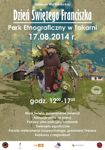 Serdecznie zapraszamy 17 sierpnia 2014 r. do Parku Etnograficznego w Tokarni na Dzień Świętego Franciszka. Będzie to wielkie święto miłośników zwierząt.