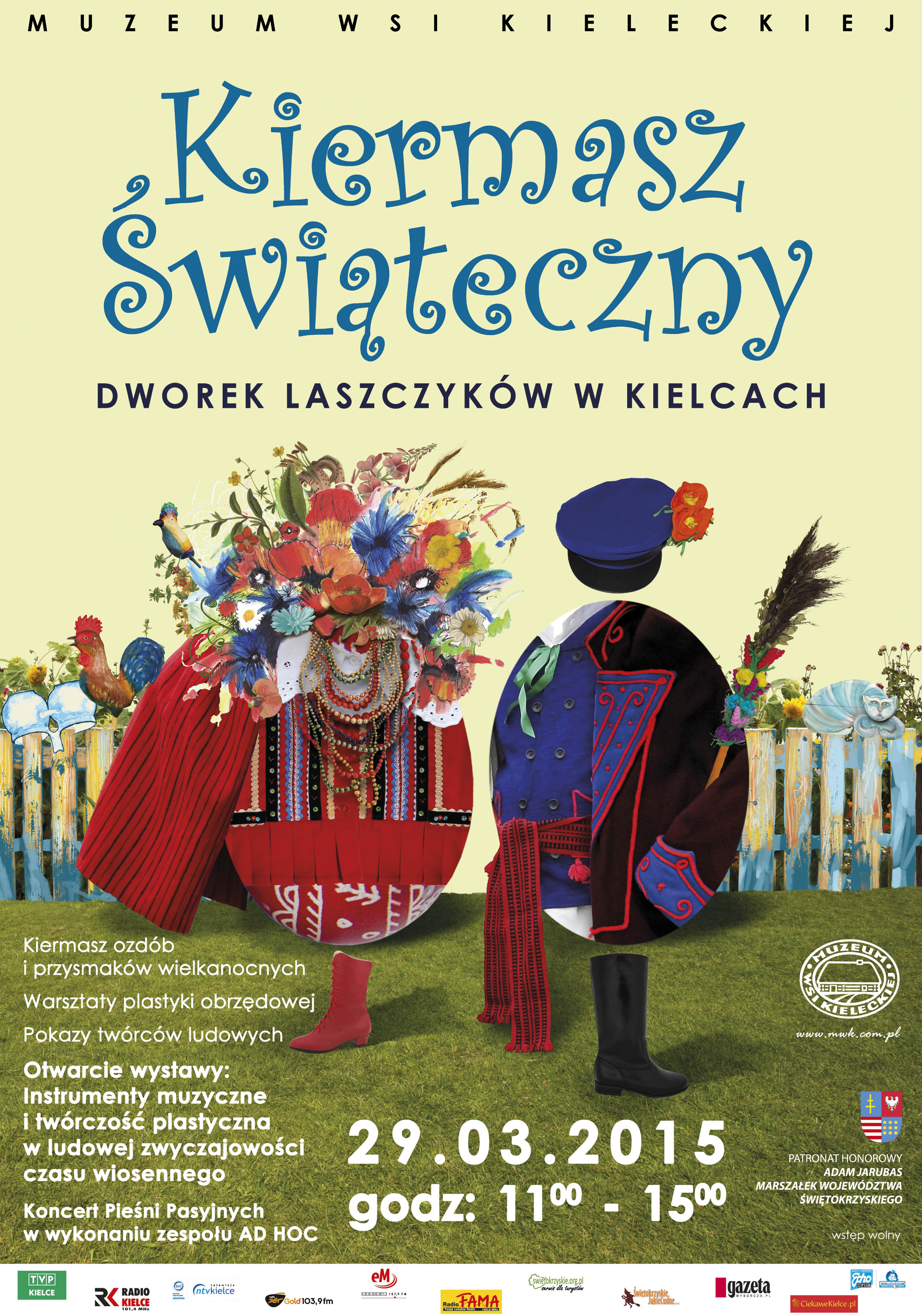 Serdecznie zapraszamy 29 marca 2015 w godz. 11.00-15.00 na Kiermasz Wielkanocny do Dworku Laszczyków w Kielcach. Jak co roku Niedziela Palmowa w Muzeum Wsi Kieleckiej to niezwykłe, przedświąteczne spotkanie z ludową tradycją.
