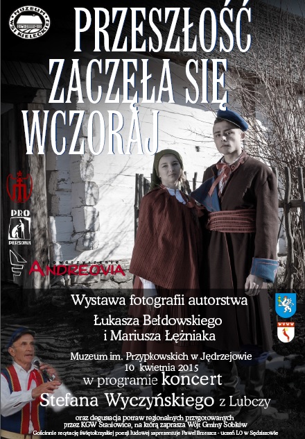 Zapraszamy 10 kwietnia do Muzeum im. Przypkowskich w Jędrzejowie na wystawę fotografii "Przeszłość zaczęła się wczoraj" autorstwa Łukasza Bełdowskiego i Mariusza Łężniaka. Zdjęcia były wykonywane między innymi w Parku Etnograficznym w Tokarni.