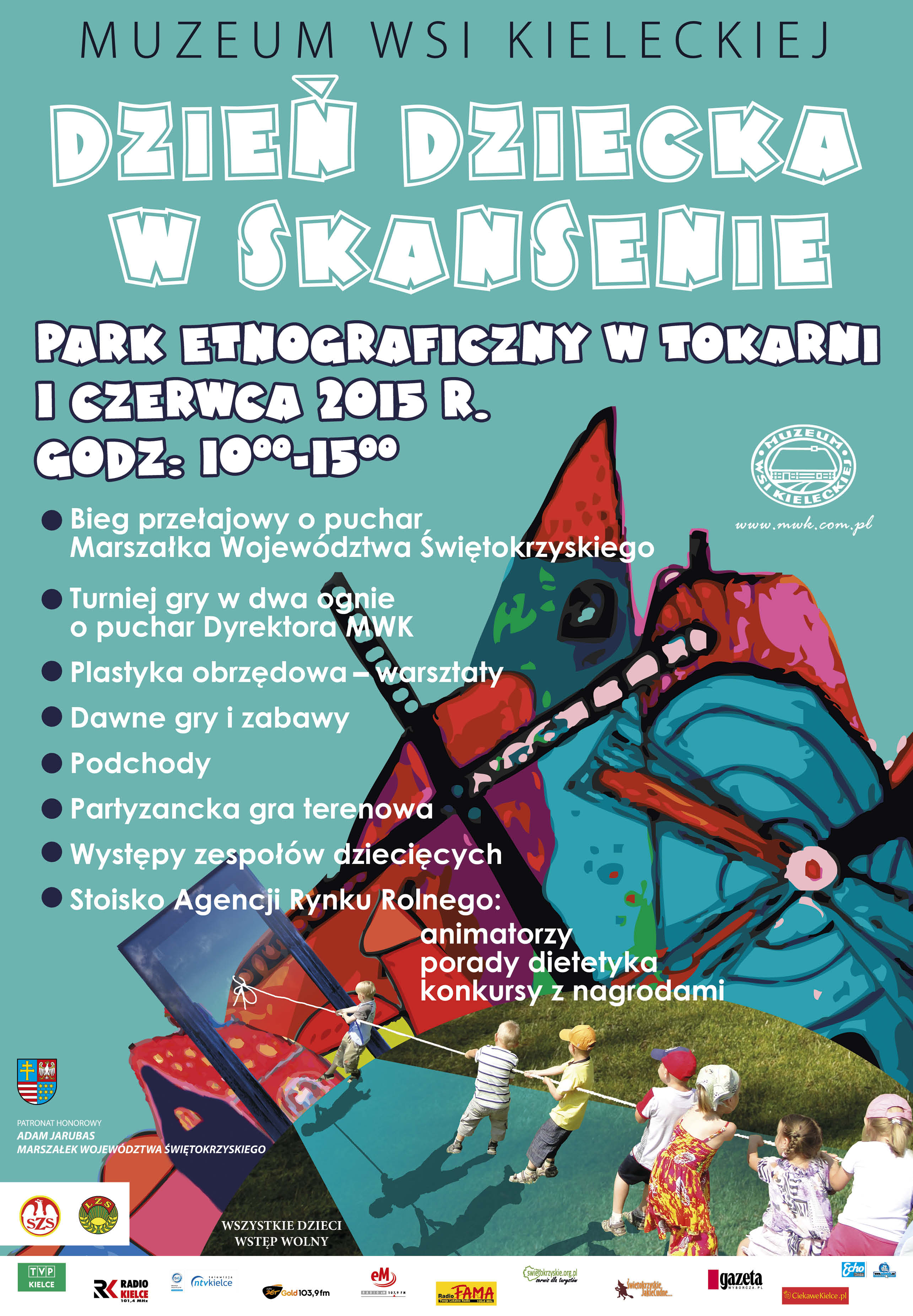 Muzeum Wsi Kieleckiej zaprasza 1 czerwca 2015 do Parku Etnograficznego w Tokarni na Dzień dziecka - zdrowo i sportowo. W programie imprezy między innymi: Bieg przełajowy o puchar Marszałka Województwa Świętokrzyskiego, Turniej gry w dwa ognie o Puchar Dyrektora MWK, dawne gry i zabawy, gra terenowa - podchody, partyzancka gra terenowa, zabawy i konkursy dla przedszkolaków: konkurs plastyczny, recytatorski, wokalny, malowanie papierowych laleczek itp. Agencja Rynku Rolnego przygotuje stoisko gdzie dzieci będą mogły wziąć udział w konkursach z nagrodami przygotowanymi przez animatorów oraz skorzystać z porad dietetyka.