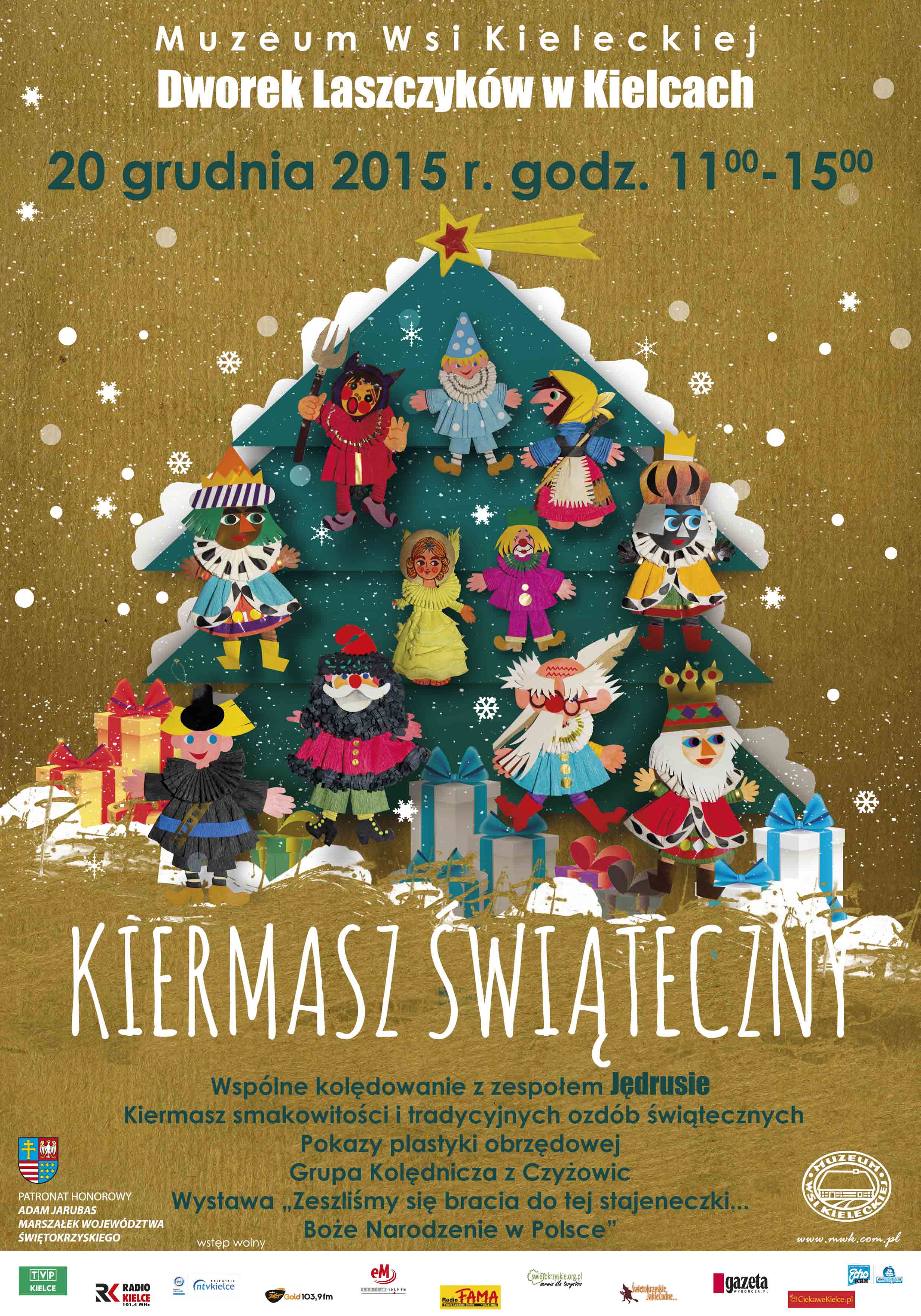 Serdecznie zapraszamy na Kiermasz Świąteczny do Dworku Laszczyków 20 grudnia 2015 r. (godz. 11.-00 - 15.00). Weźmie w nim udział ponad trzydziestu wystawców. Pięć znakomitych twórczyń ludowych pokaże jak wykonywać ozdoby świąteczne charakterystyczne dla Regionu Świętokrzyskiego.