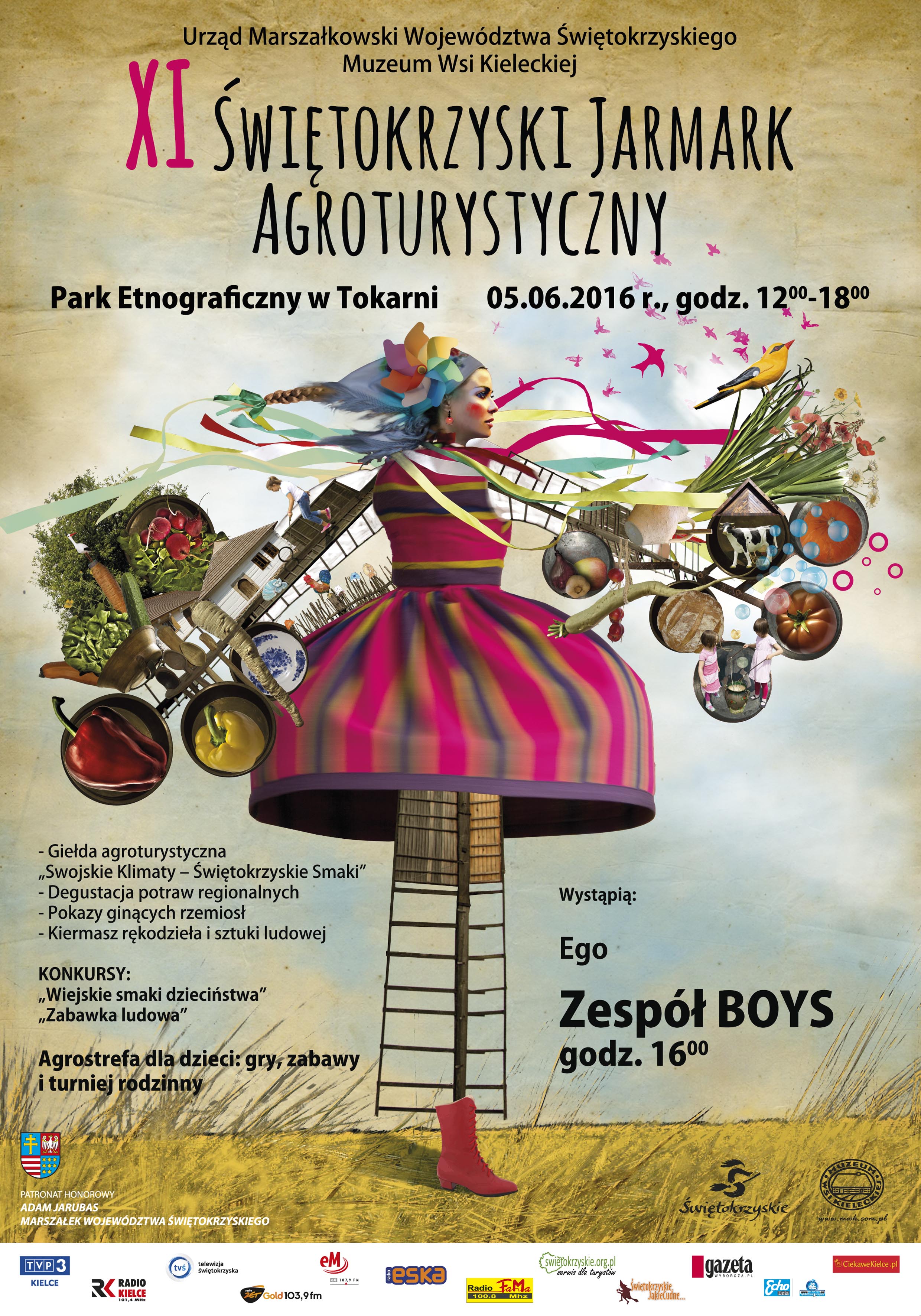 Urząd Marszałkowski Województwa Świętokrzyskiego i Muzeum Wsi Kieleckiej zapraszają 5 czerwca 2016 r. (godz. 12.00 – 18.00) na XI Świętokrzyski Jarmark Agroturystyczny do Parku Etnograficznego w Tokarni. Swój udział w wydarzeniu zapowiedziało ponad 100 gospodarstw agroturystycznych z województwa świętokrzyskiego.