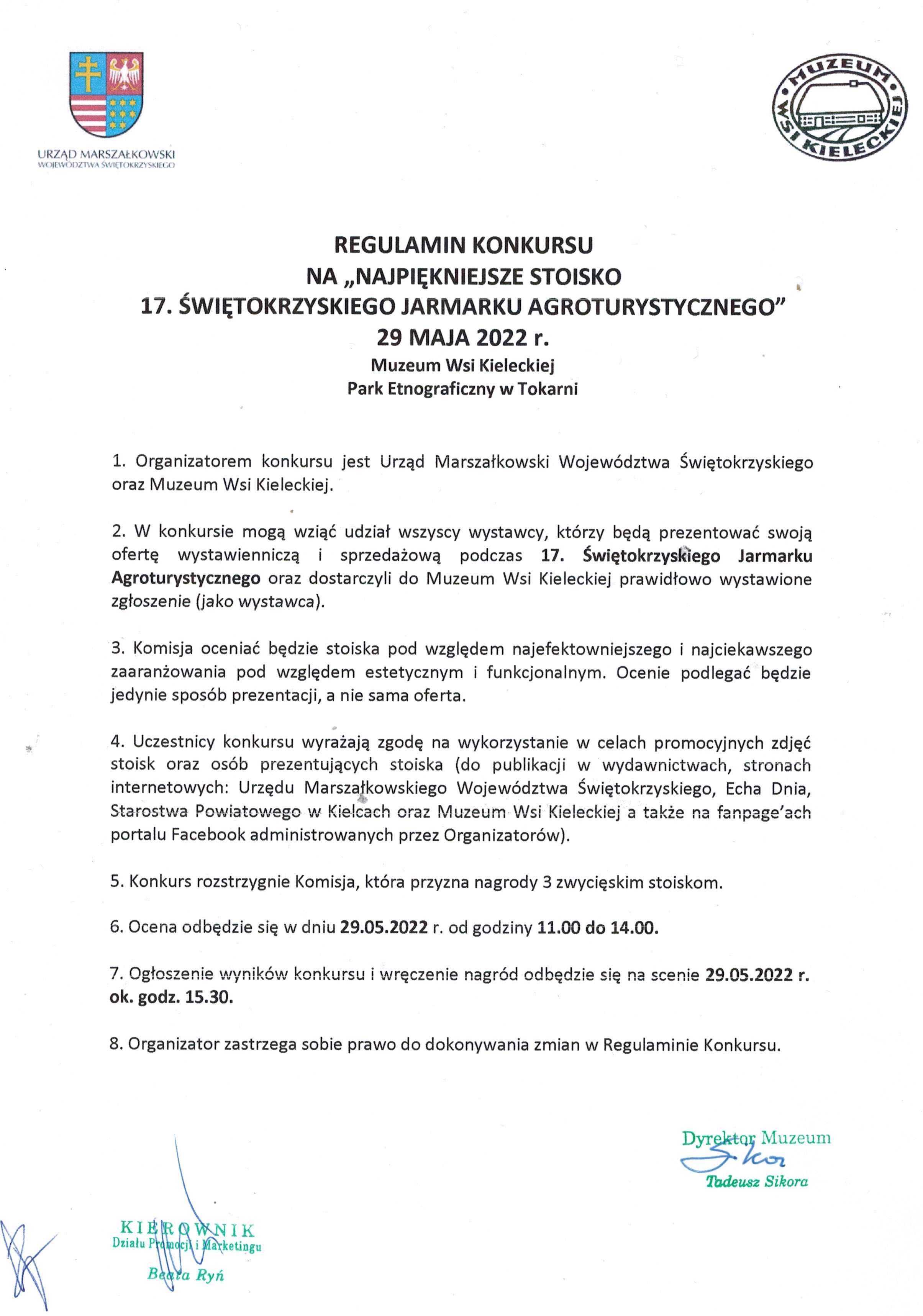Regulamin konkursu "Na najpiękniejsze stoisko 17. Świętokrzyskiego Jarmarku Agroturystycznego".