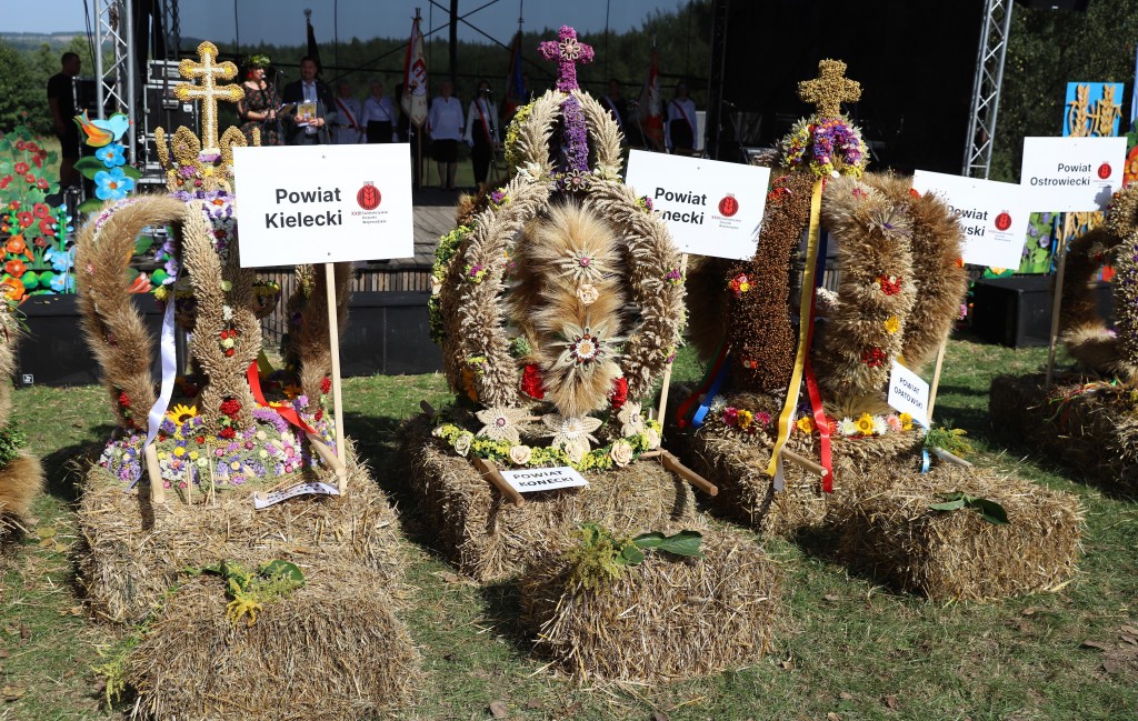Podczas wydarzenia świętokrzyscy rolnicy zaprezentowali wieńce dożynkowe, wykonane tradycyjnie, z wykorzystaniem tegorocznych zbóż, ziół, owoców i kwiatów.