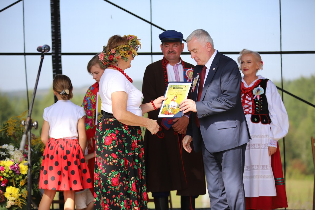 W tradycji obrzędowej na scenie wziął udział Andrzej Bętkowski, Marszałek Województwa Świętokrzyskiego oraz Starostowie tegorocznych Dożynek – Bożena Zapała oraz Dariusz Przemyski.