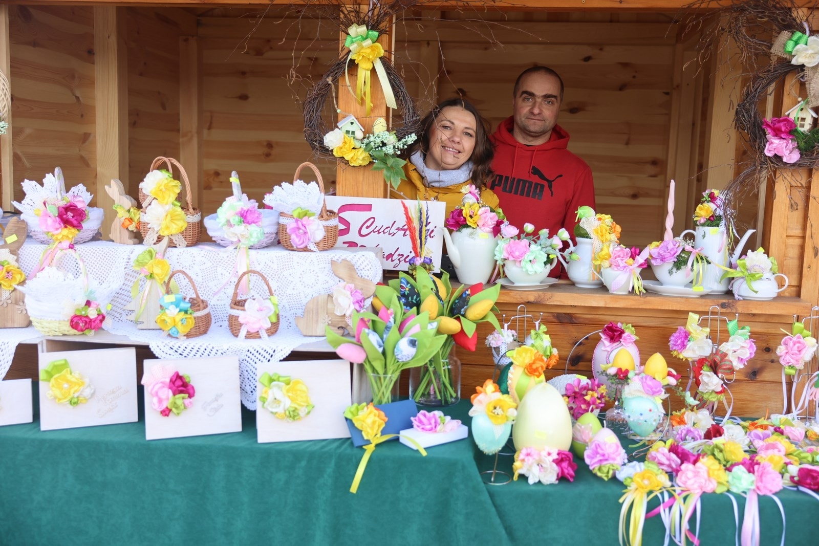 W kiermaszu wzięli udział regionalni twórcy ludowi, którzy zaprezentowali ręcznie wykonane ozdoby wielkanocne: pisanki, kraszanki, palmy oraz serwety. Były z nami Panie z KGW w Siekiernie „Siekierzanki”, Stowarzyszenie „Świętokrzyskie Tkaczki” ze Ściegni, KGW „Wzdolskie Kołowrotki”, Stowarzyszenie Rozwoju Miejscowości Wola Szczygiełkowa oraz lokalni rękodzielnicy i producenci.