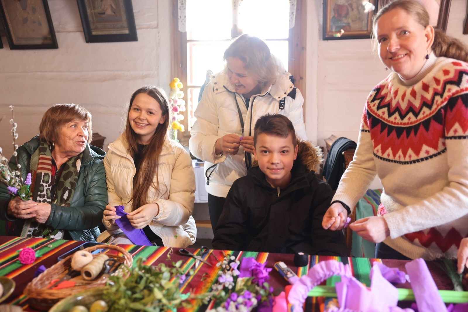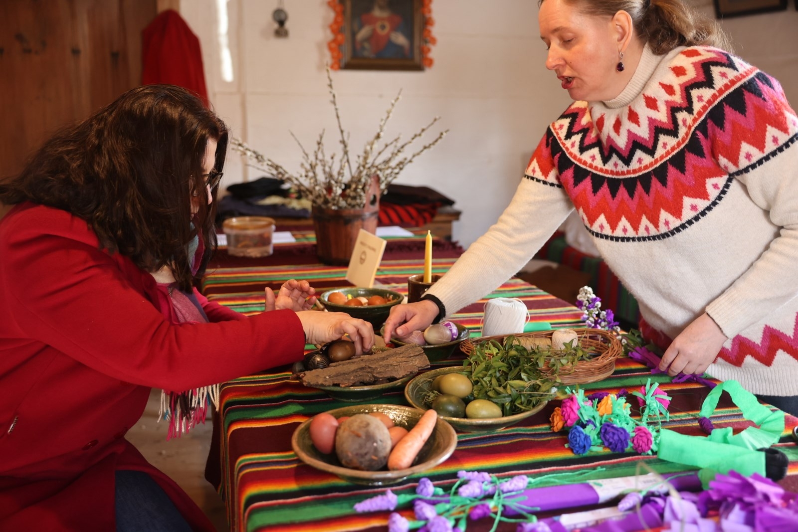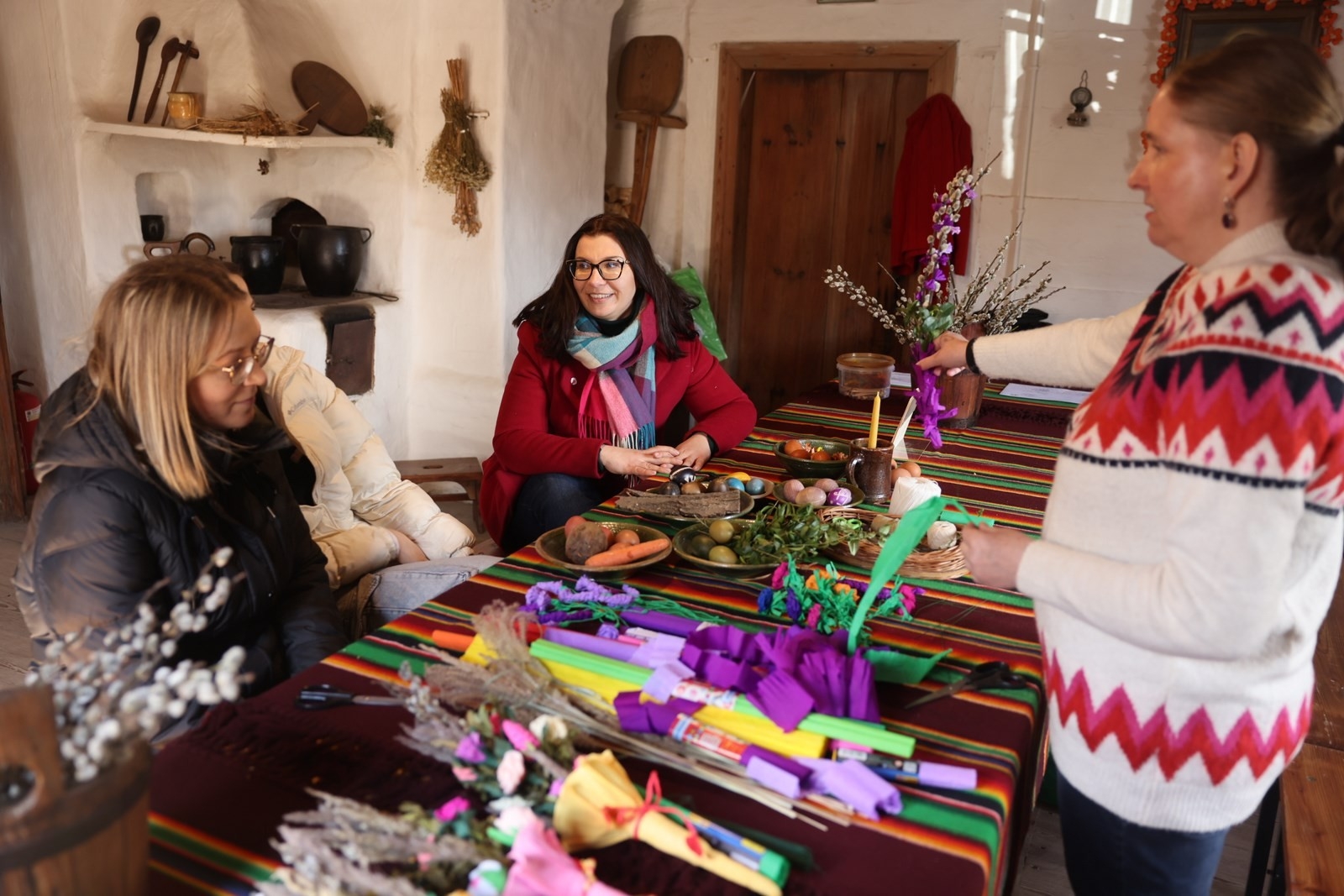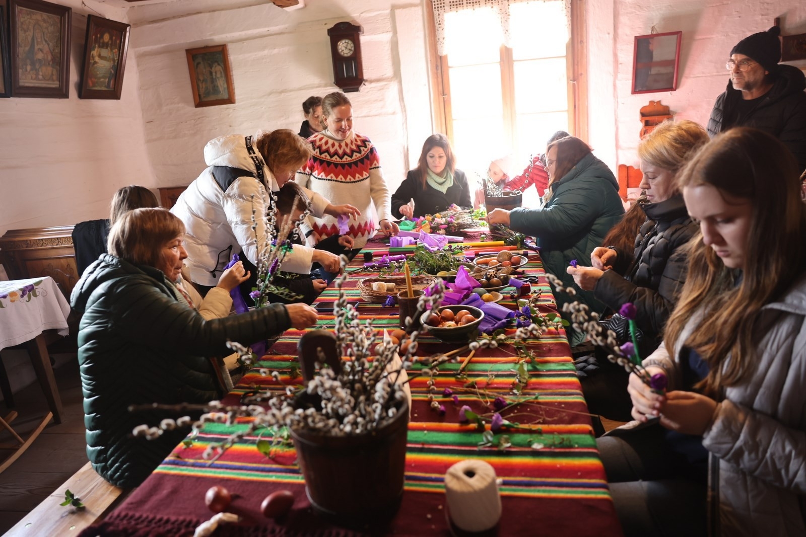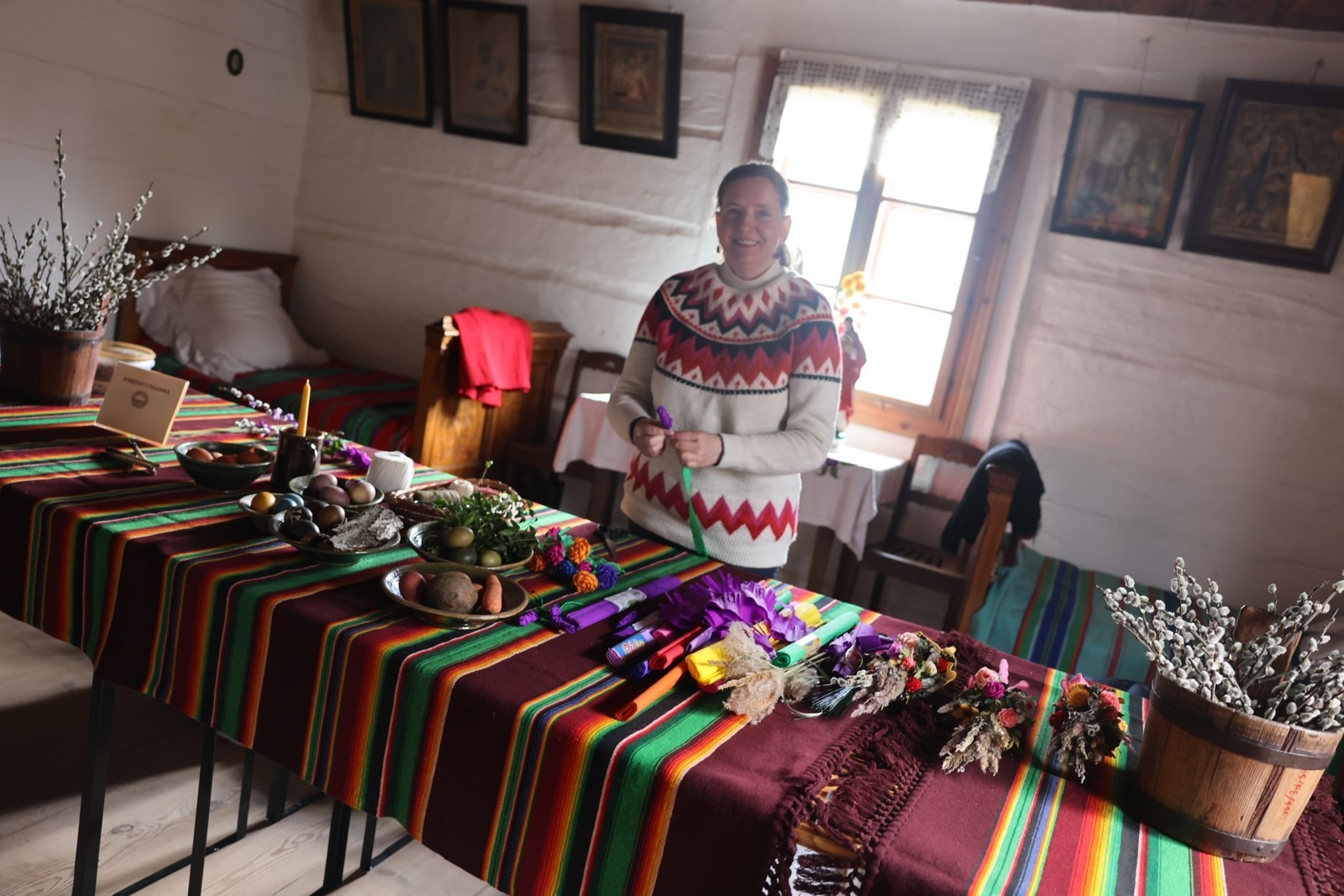 We wnętrzach Zagrody Czernikiewiczów odbyły się „Warsztaty z Palemką”, które poprowadziła edukator i etnograf z Muzeum Wsi Kieleckiej Ewa Wielgus.