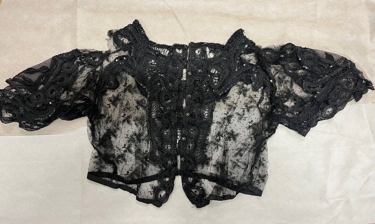 - Zadanie obejmuje konserwację tkaniny typu „Buczacz” pochodzącej z manufaktury rodziny Potockich w Buczaczu z końca XIX wieku oraz elementów stroju dworskiego z XIX wieku. Jest nim damski trzyczęściowy strój reprezentacyjny złożony z bluzki, bolerka i spódnicy z końca XIX wieku, reprezentujący modę i styl życia ziemiańskiego. Wykonany jest z delikatnych tkanin z elementami dekoracyjnymi – wylicza dr Wioletta Brzezińska- Marjanowska, kierownik Działu Zbiorów Muzealnych w Muzeum Wsi Kieleckiej.