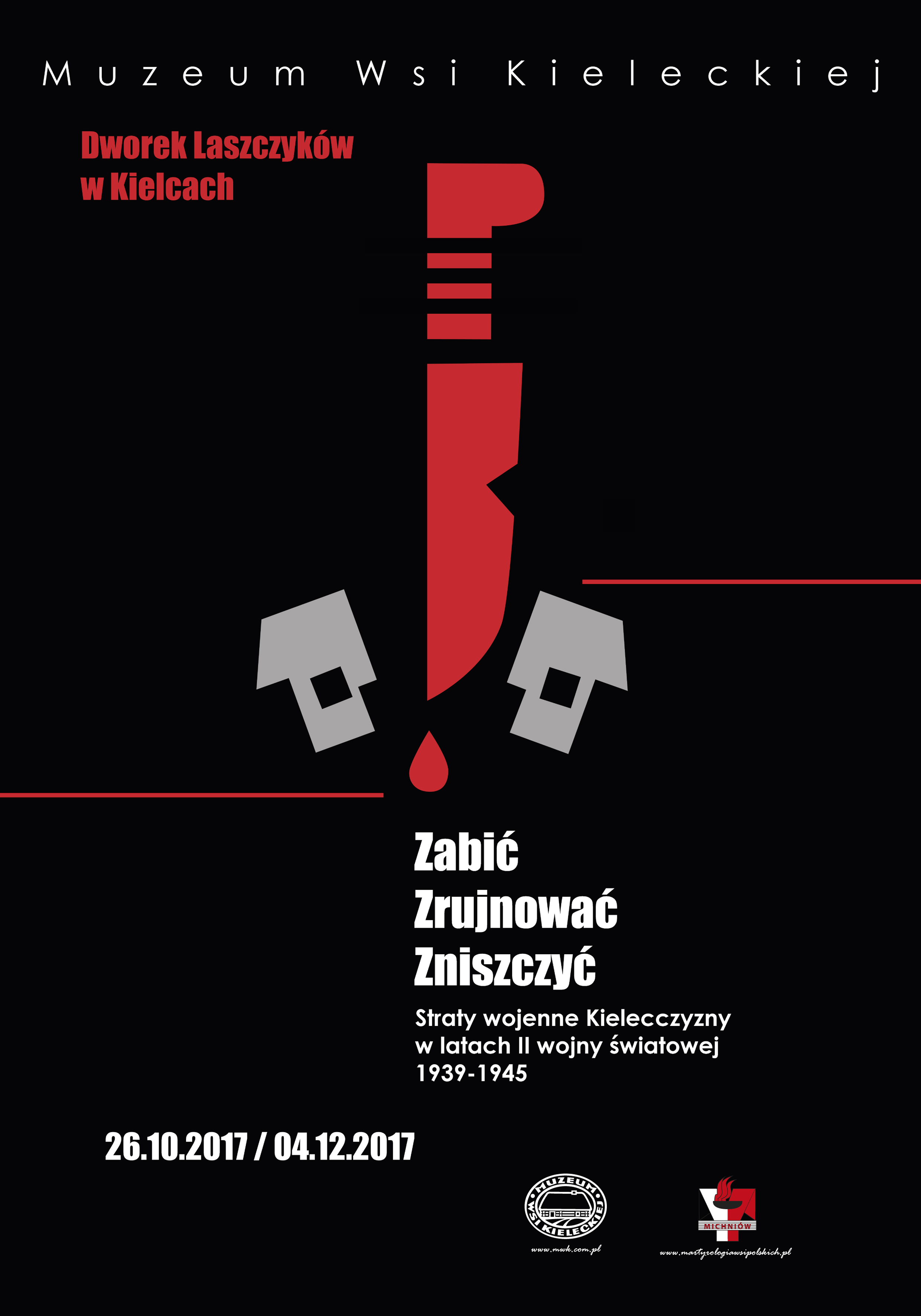 Zapraszamy od 26 października 2017 do Dworku Laszczyków na nową wystawę „ZABIĆ! ZRUJNOWAĆ! ZNISZCZYĆ! - straty wojenne Kielecczyzny w latach 1939 -1945”.